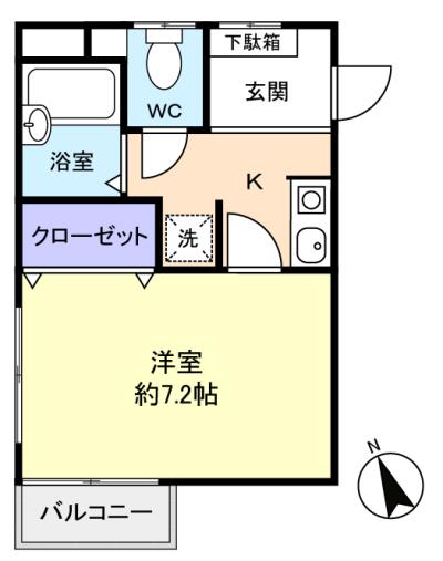 - 洋室(7.2畳),K(1.5畳)