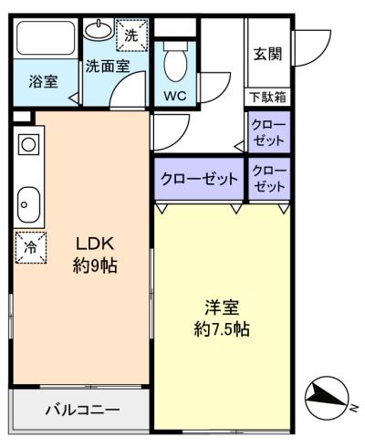 - 洋室(7.5畳),LDK(9畳)