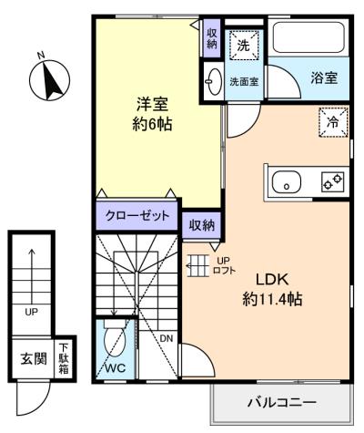 - LDK(11.4畳),洋室(6畳),その他(3.4畳)