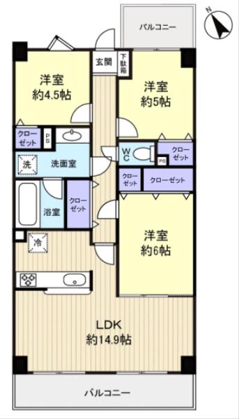 - 洋室(6畳),洋室(5畳),洋室(4.5畳)