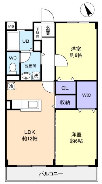 - 洋室(6畳),LDK(12畳),洋室(6畳)