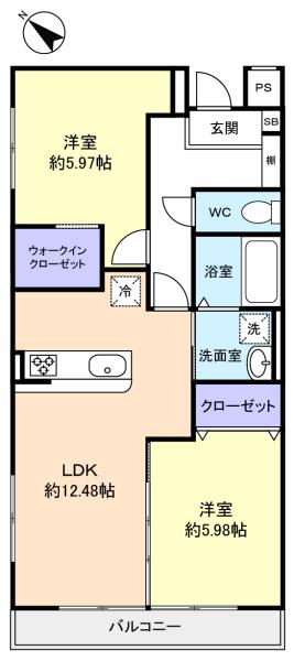 - LDK(12.4畳),洋室(5.9畳),洋室(5.9畳)