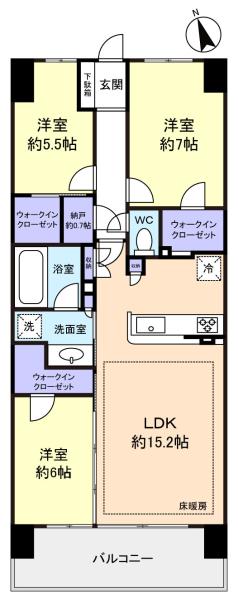 - LDK(15.2畳),洋室(7畳),洋室(6畳),洋室(5.5畳)