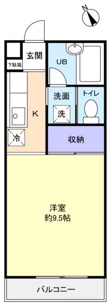- K(1.5畳),洋室(9.5畳)