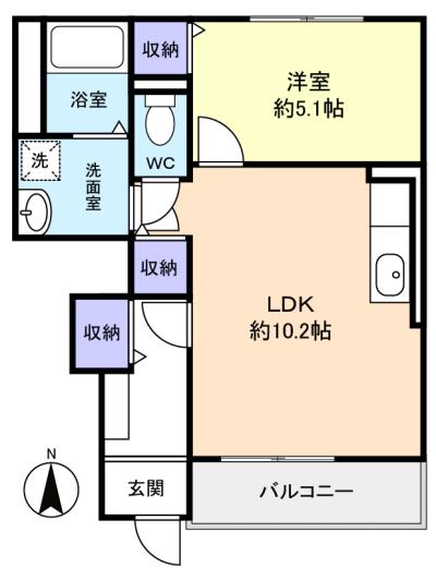 - 洋室(5.1畳),LDK(10.2畳)