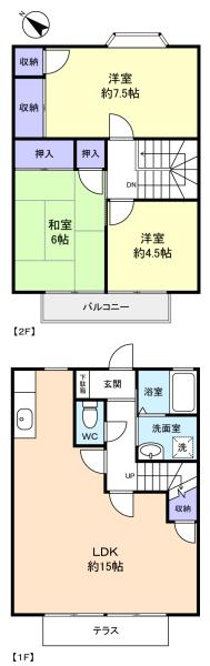- LDK(15畳),洋室(7.5畳),洋室(4.5畳),和室(6畳)