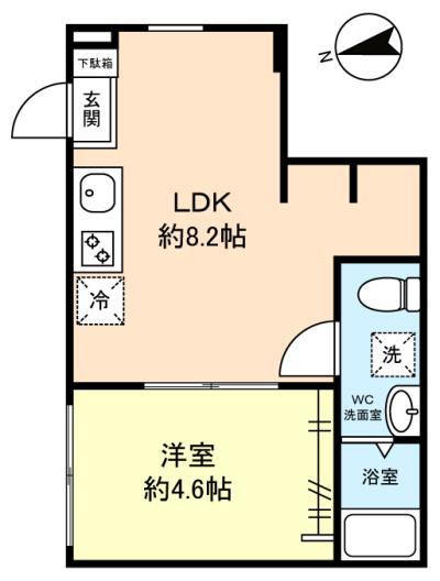 - 洋室(4.6畳),LDK(8.2畳)