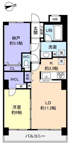 - 洋室(6畳),納戸(5.5畳),LDK(14.5畳)