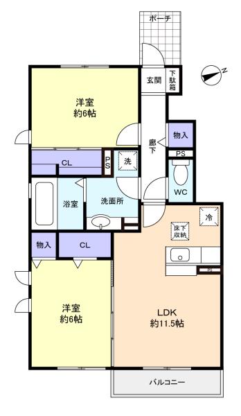 - 洋室(6畳),洋室(6畳),LDK(11.5畳)